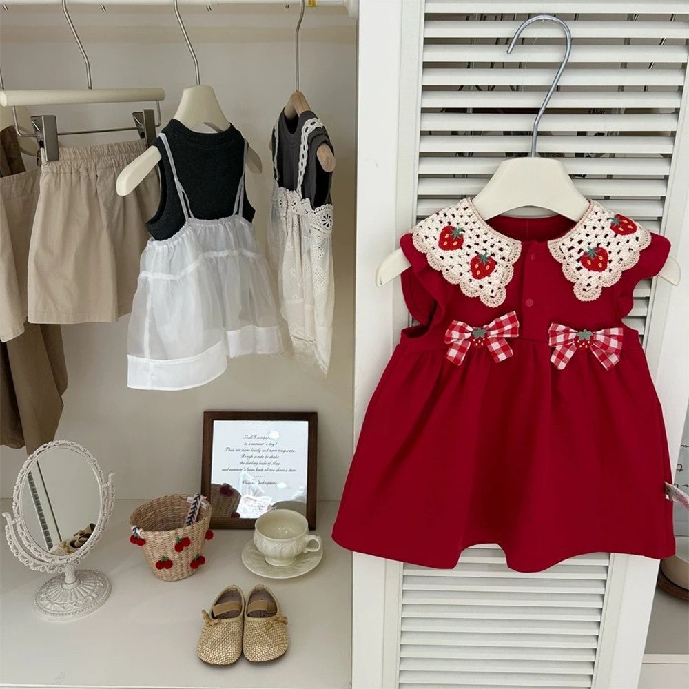 [수입] 딸기뜨개카라원피스 (바로배송)