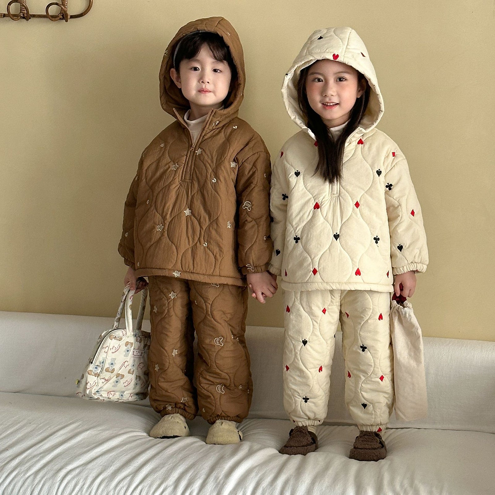 [수입]누빔패딩기모상하셋